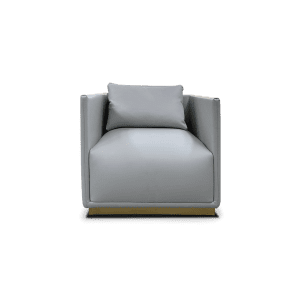 The design of the PALM BAY armchair features a unique semicircular double-curved body that grants firmness and elegance to this chair. The pleasantly curved but rigorous form flows into slim armrests that allow for a cozy seating space flanked by plush side and back pillows. Positioned on a swivel base, this armchair exudes comfort and luxury while fostering a more relaxed style.