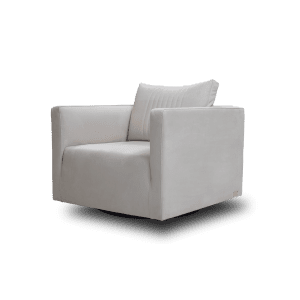 The DADO armchair elevates its cubic shape with a subtle upholstery detail culminating in a noble metal accent bar in its back. The ?petit? proportions resting on a swivel base combined with a soft down-padded seat make it a flexible, comfortable and elegant piece.