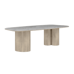 The MUMBA Dining Table is a stunning piece that combines modern design with natural elements. It’s distinctive feature lies in it’s dual tower base, with each tower showcasing a unique shape. The lower part of the dining table matching the bases, while the top of the table features elegant marble, adding a touch of sophistication.
