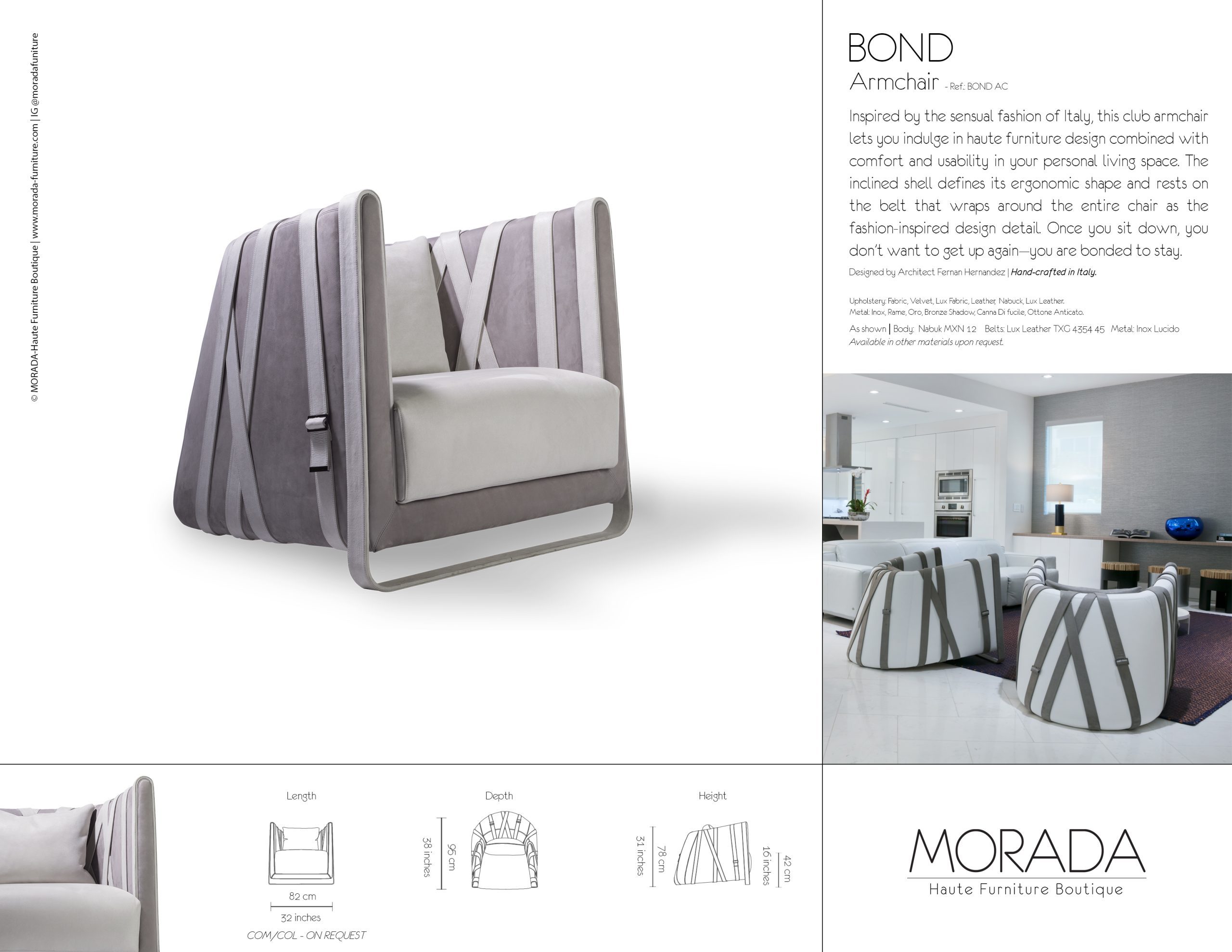 Inspired by the sensual fashion of Italy, this club armchair lets you indulge in haute furniture design combined with comfort and usability in your personal living space. The inclined shell defines its ergonomic shape and rests on the belt that wraps around the entire chair as the fashion-inspired design detail. Once you sit down, you don’t want to get up again, you are bonded to stay.