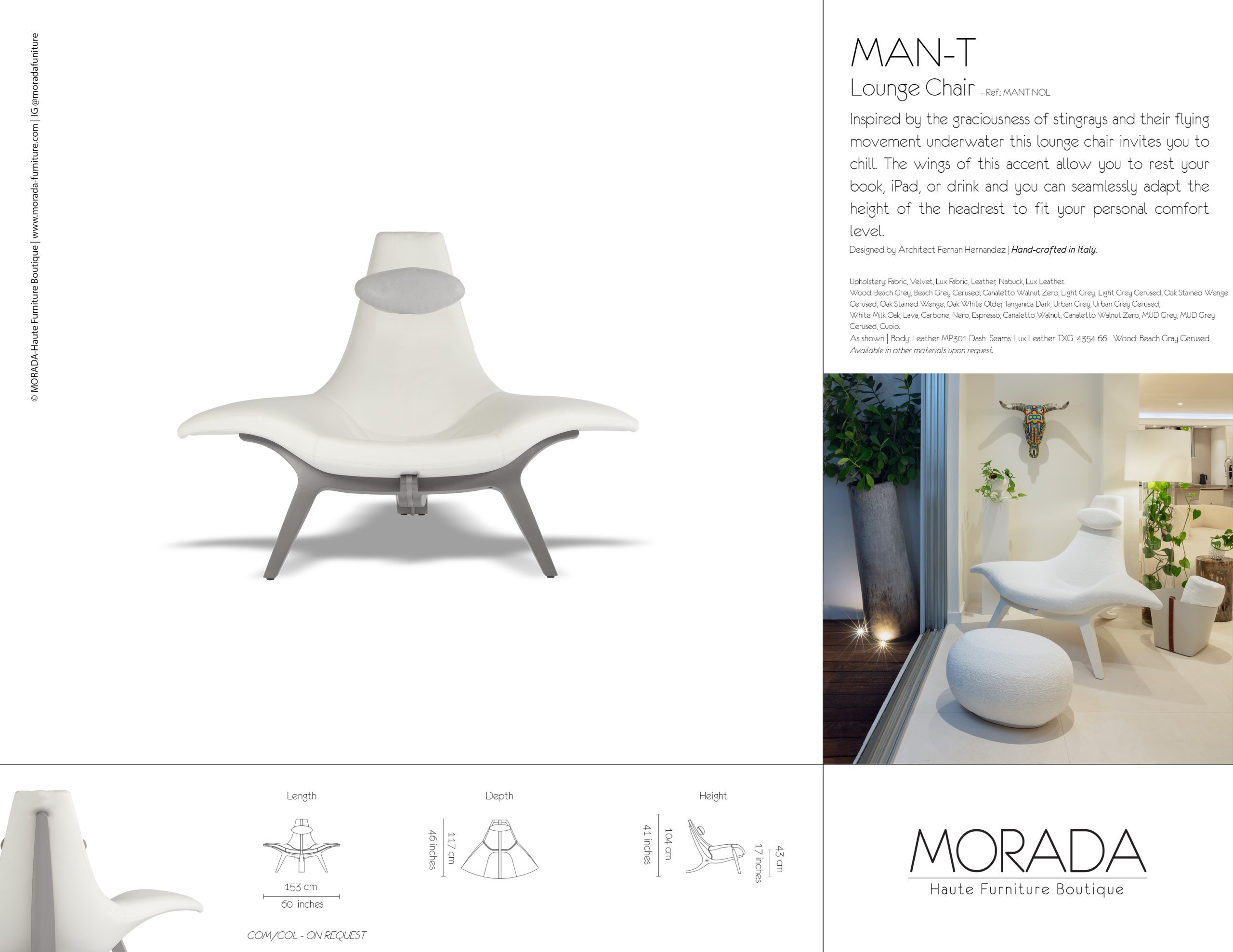 Inspired by the graciousness of stingrays and their flying movement underwater this lounge chair invites you to chill. The wings of this accent allow you to rest your book, iPad, or drink and you can seamlessly adapt the height of the headrest to fit your personal comfort level.