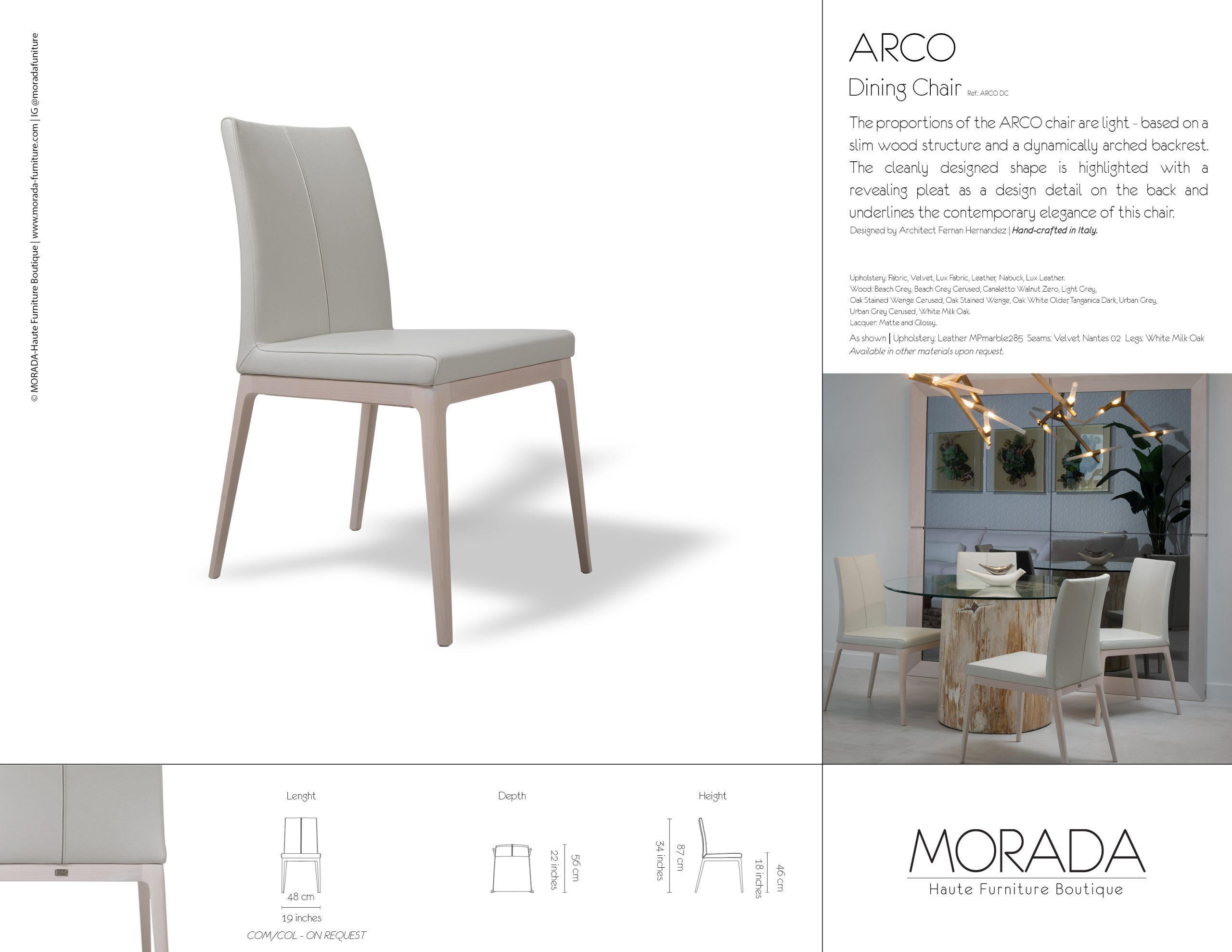 The proportions of the ARCO chair are light – based on a slim wood structure and a dynamically arched backrest. The cleanly designed shape is highlighted with a revealing pleat as a design detail on the back and underlines the contemporary elegance of this chair.