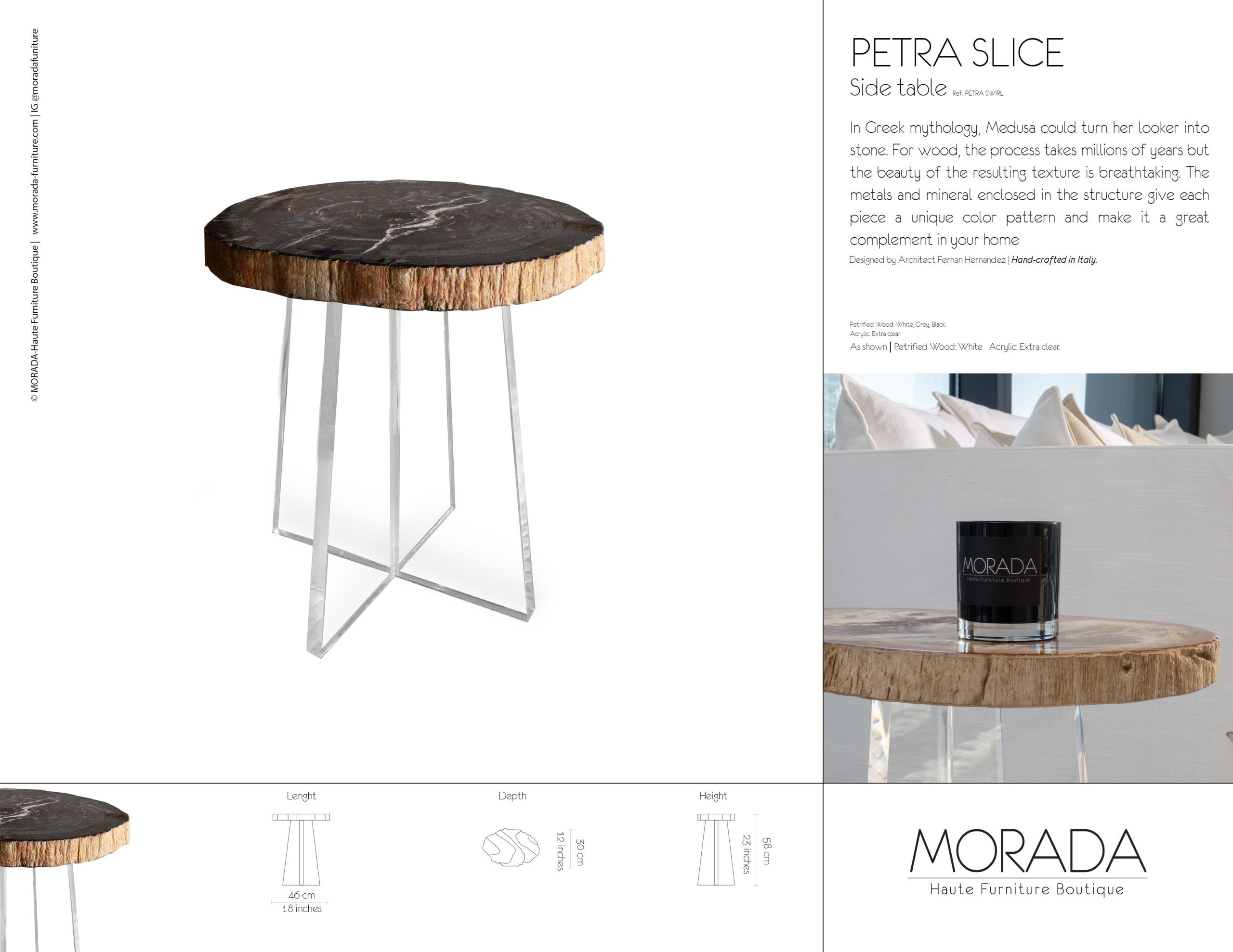 In Greek mythology, Medusa could turn her looker into stone. For wood, the process takes millions of years but the beauty of the resulting texture is breathtaking. The metals and mineral enclosed in the structure give each piece a unique color pattern and make it a great complement in your home.