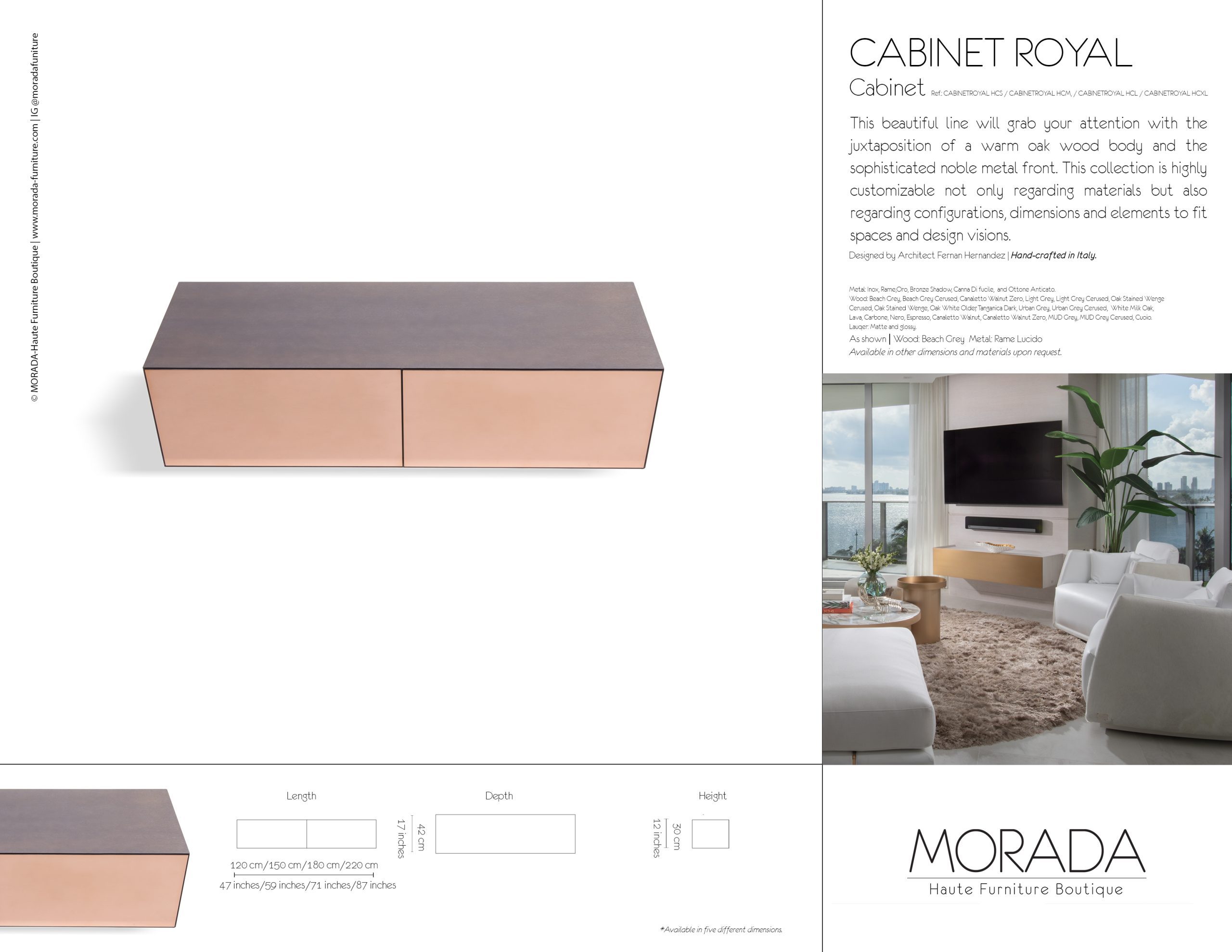 As shown | Wood: Beach Grey Metal: Rame Lucido
