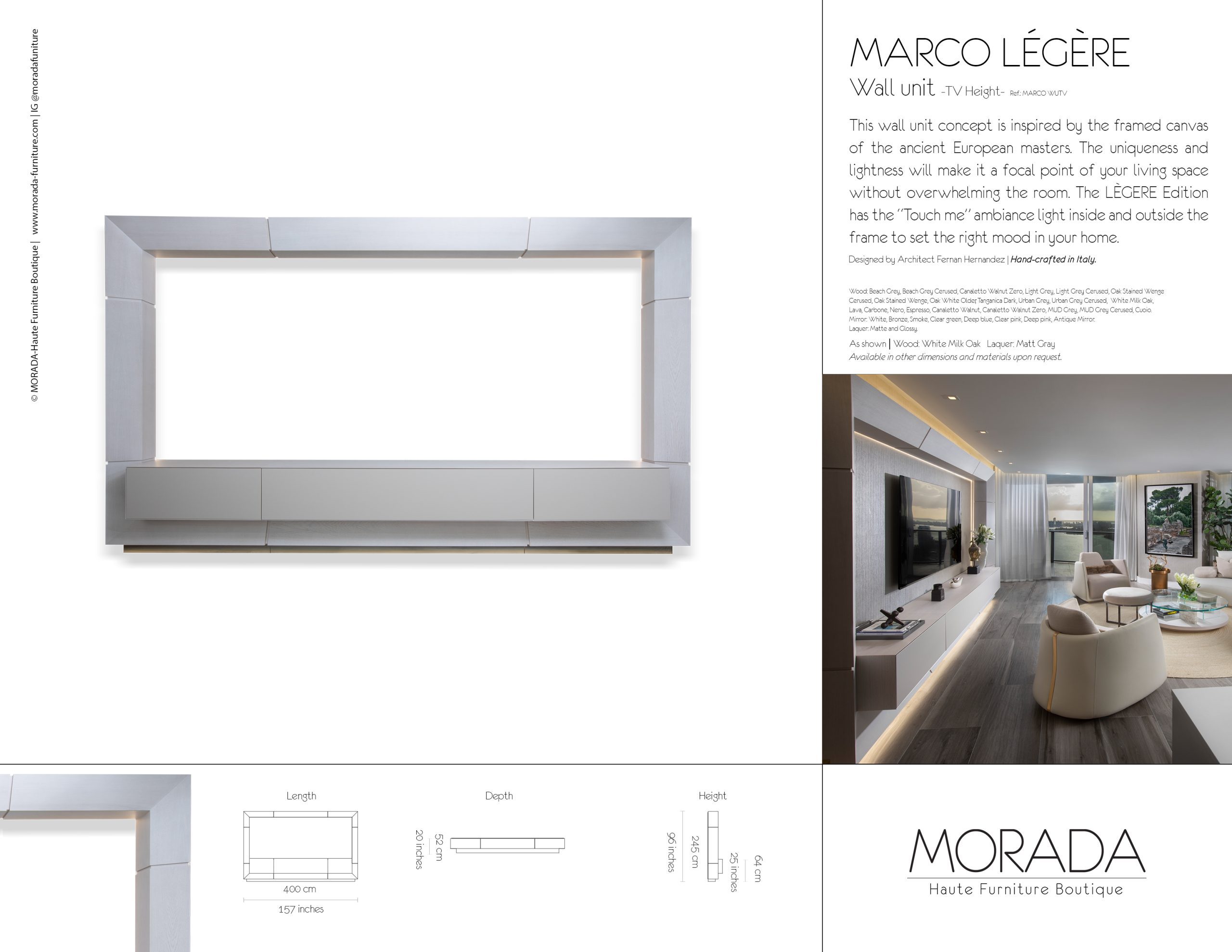 This wall unit concept is inspired by the framed canvas of the ancient European masters. The uniqueness and lightness will make it a focal point of your living space without overwhelming the room. The LÉGÈRE Edition has the ‘Touch me’ ambiance light inside and outside the frame to set the right mood in your home.
