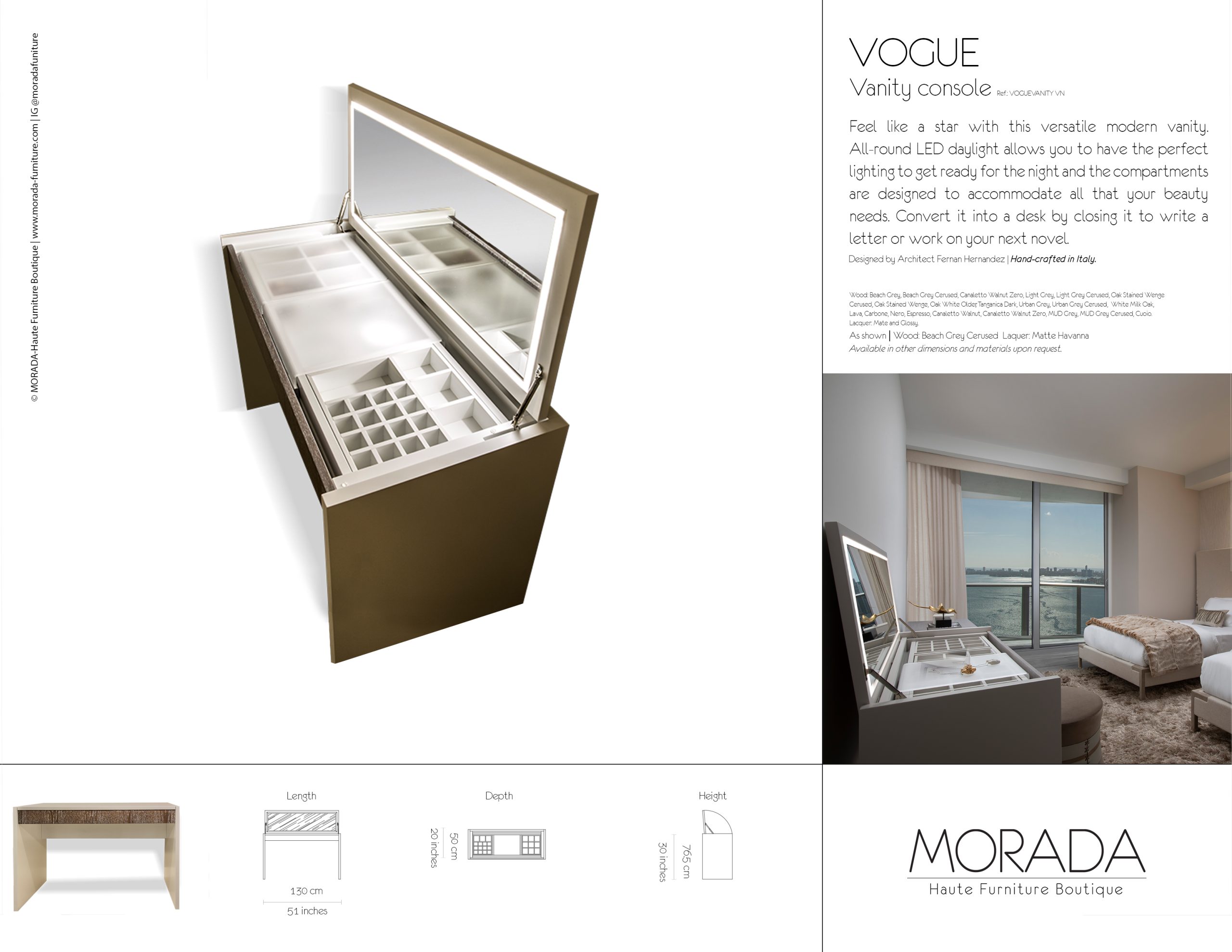 Feel like a star with this versatile modern vanity. All-round LED daylight allows you to have the perfect lighting to get ready for the night and the compartments are designed to accommodate all that your beauty needs. Convert it into a desk by closing it to write a letter or work on your next novel.